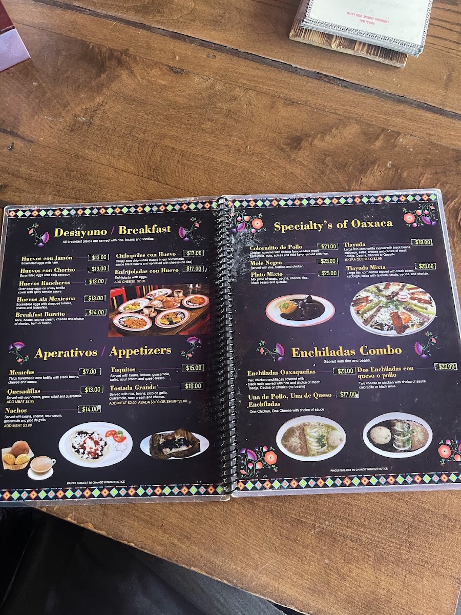 One of the best Mexican Oaxacan Food, rich in culture and history as well as the food. It becomes for me and my family like a ritual, we gather to eat and get some drinks once a month. The food is excellent, my kids always goes for the fajitas or quesadillas. For us we always get different plates , birrias, burritos, the choice is so vast that sometimes we let the owner and his daughter choose for us which makes it very easy. They also have their own merch as well (shirts, hats, hoodies) that we love to rock when we go eat there. Love the place!!! It's a must try.