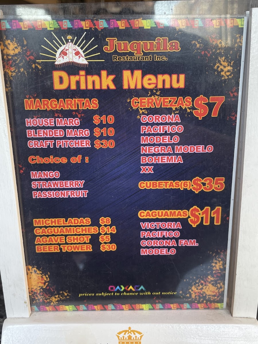One of the standout features of Juquila Restaurant is its diverse menu, which includes everything from flavorful appetizers like Tamal de Mole and Memelas to hearty seafood dishes like Mojarra Frita and Parrillada De Mariscos. The extensive list of beverages, including Atole de Leche and Champurrado, adds to the authentic dining experience.